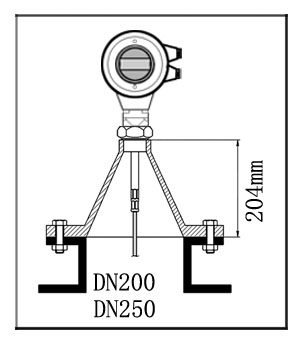 當儀表需要安裝于直徑大于200mm短管時,短管內壁產生回波,在介質介電常數低的情況下會引起測量誤差。因此,對于一個直徑為200mm或250mm的短管,需要選一個帶“喇叭接口”的特殊法蘭。盡量避免安裝在直徑大于250mm的短管上。