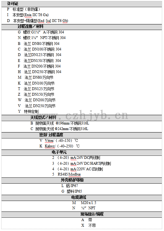 過程溫度(天線部分的溫度) (-40~250)℃